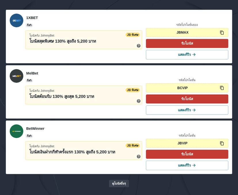 บางเว็บไซต์นำเสนอรหัสโบนัสเพื่อเข้าถึงข้อเสนอที่ดีที่สุด ขณะที่บางเว็บไซต์สามารถขอรับได้โดยตรง คุณสามารถเช็คผ่านหน้าเว็บหลักของเจ้ามือรับแทงได้โดยตรง